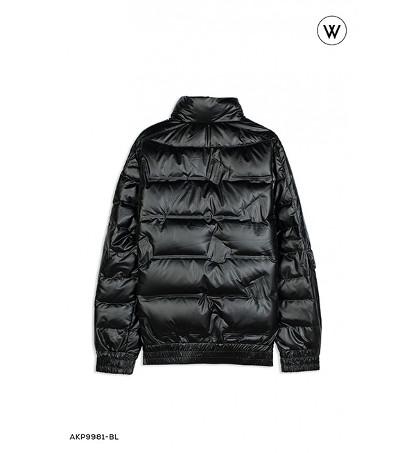 GLOSSY BLACK PUPPY JACKET WITH 3P COLLAR AND ZIPPER COVER